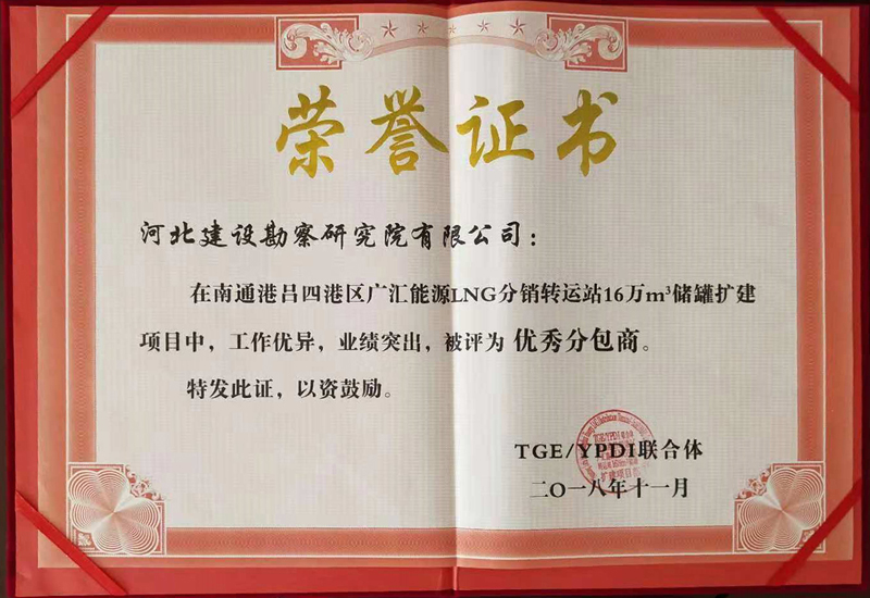 我公司獲廣匯能源LNG項(xiàng)目“優(yōu)秀承包商”證書