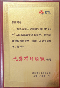 2018年12月14日連云港石化有限公司副總經(jīng)理孫剛特向我公司李友東經(jīng)理親自頒發(fā)“攻堅(jiān)克難鐵軍”稱號(hào)獎(jiǎng)牌,向項(xiàng)目經(jīng)理李亮同志頒發(fā)“優(yōu)秀項(xiàng)目經(jīng)理”榮譽(yù)稱號(hào),并致感謝信,對(duì)我公司表現(xiàn)出來無私奉獻(xiàn)、頑強(qiáng)拼搏的精神給予了高度肯定。河北建勘“鐵軍”風(fēng)采、勇創(chuàng)第一的精神,獲得了業(yè)主及各方一致贊譽(yù),并衷心希望我們雙方在今后的工作中精誠(chéng)合作,共鑄輝煌!
