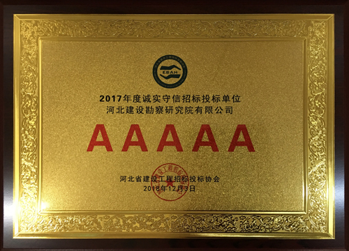 近日,我公司被河北省建設(shè)工程招標(biāo)投標(biāo)協(xié)會評為2017年度河北省建設(shè)工程招標(biāo)投標(biāo)誠實(shí)守信5A級施工企業(yè)。