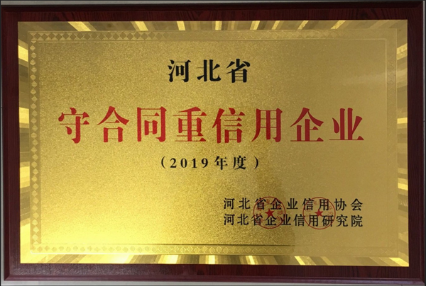 根據河北省文明辦、河北省企業信用促進會印發的《關于開展“創建文明城市·爭做誠信企業”活動的通知》,河北省企業信用促進會、河北省企業信用研究院對“守合同重信用”企業進行認定,我公司被授予“河北省守合同重信用企業”。
