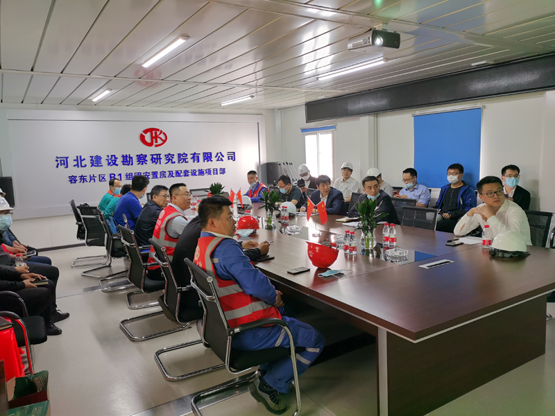 在B1組團(tuán)項目部,劉中林總經(jīng)理一行聽取了項目部的工作匯報,項目經(jīng)理夏文超介紹了目前施工進(jìn)展情況、下一步工作計劃、以及保證工期目標(biāo)的措施。劉中林總經(jīng)理對我項目部的工作給予了充分肯定,相信河北建勘一定能干好這個項目,并贊揚夏經(jīng)理工作思路清晰、安排合理。劉中林總經(jīng)理要求,安置房項目是關(guān)系民生大計的工程,一定要確保按期完成,讓搬遷的老百姓按時入住。他還強調(diào)指出,馬上進(jìn)入北方的汛期,項目部一定要做好防汛工作,確保安全度汛。城市發(fā)展投資公司總經(jīng)理秦文龍指出:施工中出現(xiàn)的各種問題一定要及時進(jìn)行反饋報告,城發(fā)公司將全力解決協(xié)調(diào),全力確保項目的順利實施。