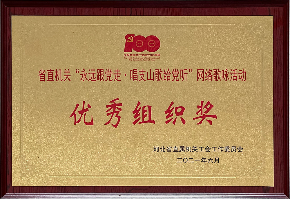 在由省直工會組織開展的“永遠跟黨走•唱支山歌給黨聽”網絡歌詠活動中,我公司經過反復排練和精心錄制剪輯,報送的合唱曲目《我和我的祖國》獲得銀獎,同時公司也獲得“優秀組織獎”榮譽。