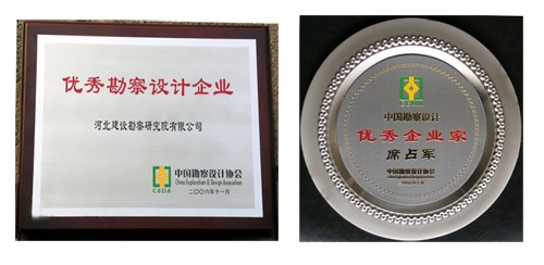 我公司喜獲中國勘察設計協會頒發的“優秀勘察設計企業”榮譽稱號,董事長席占軍獲“優秀企業家”稱號。