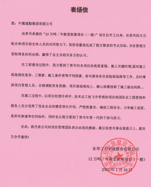 12萬噸/年炭黑項(xiàng)目(一期)項(xiàng)目強(qiáng)夯施工圓滿完成施工任務(wù),總包方對(duì)我公司年青的項(xiàng)目團(tuán)隊(duì)高度認(rèn)可,稱他們是所有參建單位的標(biāo)桿,充分展示了我公司年青一代的干勁與活力。