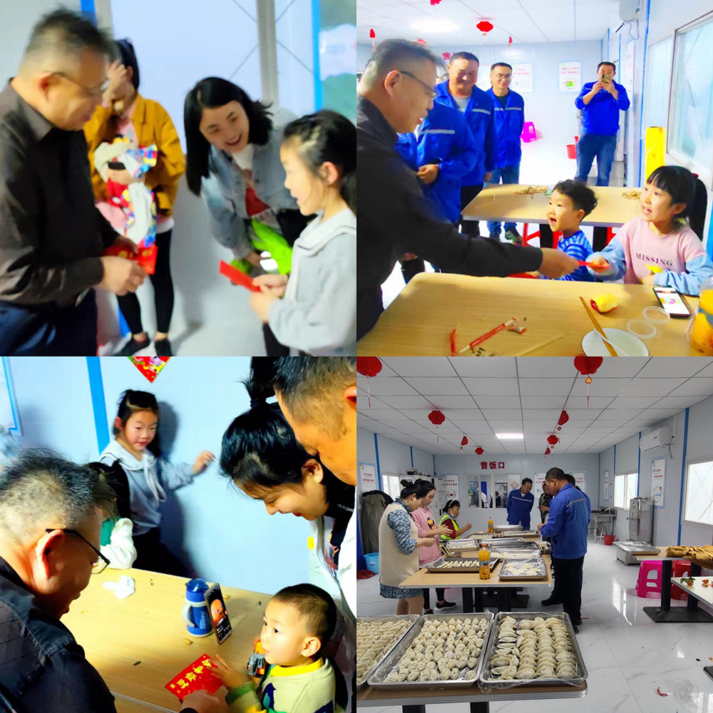 除夕之夜,項(xiàng)目部歡聲笑語(yǔ)、熱鬧非凡,洋溢著濃濃的春節(jié)氣息。李總與大家歡聚一堂,還為項(xiàng)目員工的孩子們準(zhǔn)備了新年紅包,員工家屬們也參與其中,包起了年夜餃子,大家其樂融融一起喜迎新年,讓沒能回家過節(jié)的員工們切實(shí)感受到大家庭的溫暖。