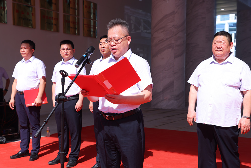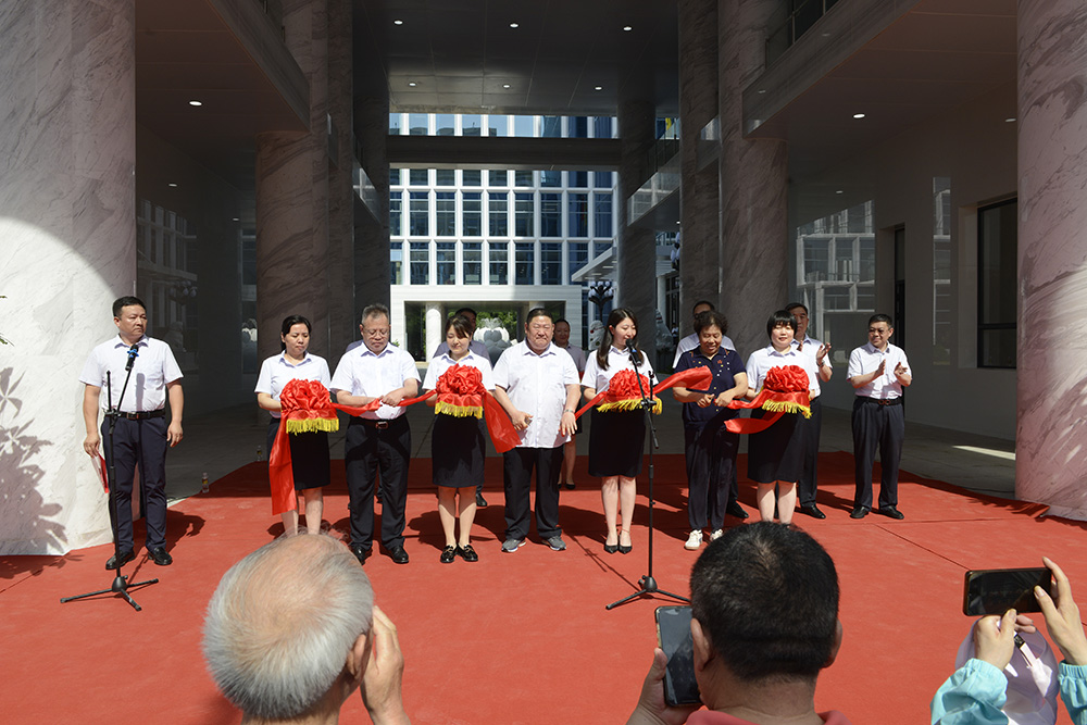 董事長韓立君、總經(jīng)理李華偉、退休老領(lǐng)導(dǎo)代表孟小省為新辦公樓剪彩