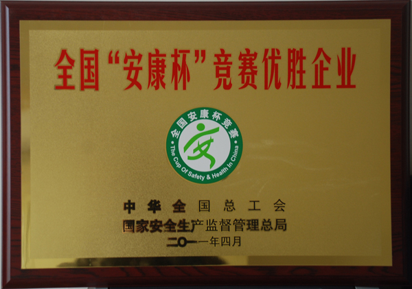 公司在2010年度全國“安康杯”競賽活動中榮獲優(yōu)勝單位稱號,這是我公司連續(xù)七年榮獲全國安康杯競賽優(yōu)勝單位。