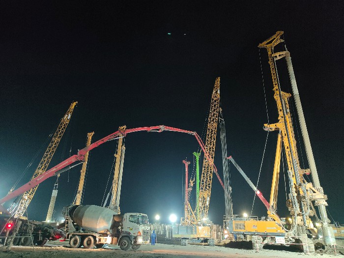 本項目位于福建省福清市,由萬華化學(福建)碼頭有限公司投資建設,集團公司承建了1#乙烯低溫儲罐的全部樁基工程。項目采用高承臺樁基結合樁柱一體化施工工藝,使用旋挖鉆機成孔,高質量完成了全部448根大直徑鋼筋混凝土灌注樁施工,樁徑均為1200毫米。
