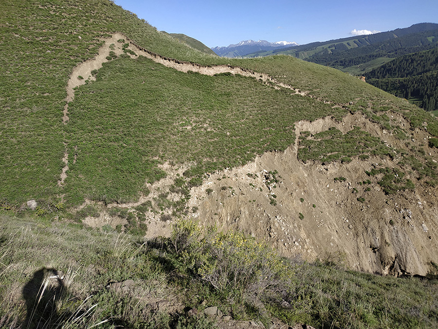 山體滑坡:白楊溝豐源煤礦生產(chǎn)調(diào)度樓北側(cè)邊坡出現(xiàn)了滑坡,滑坡體表面巖土體松散,在降雨條件下有進(jìn)一步發(fā)生滑坡的可能。滑坡坡腳下有安全生產(chǎn)調(diào)度樓等建(構(gòu))筑物,如果再次發(fā)生滑坡,會危及生產(chǎn)調(diào)度樓及其周圍建筑物的人員生命和財產(chǎn)安全,因此需要對該滑坡進(jìn)行勘查及治理,保證人員生命和財產(chǎn)安全。