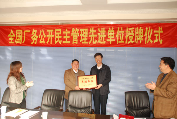 12月10日,省直工會(huì)范金龍主任陪同河北省總工會(huì)副主席劉書(shū)為等蒞臨我公司,頒發(fā)“全國(guó)廠(chǎng)務(wù)公開(kāi)民主管理先進(jìn)單位”獎(jiǎng)牌、證書(shū)。全國(guó)榮獲此殊榮的共有408家,河北省直僅有我公司一家。