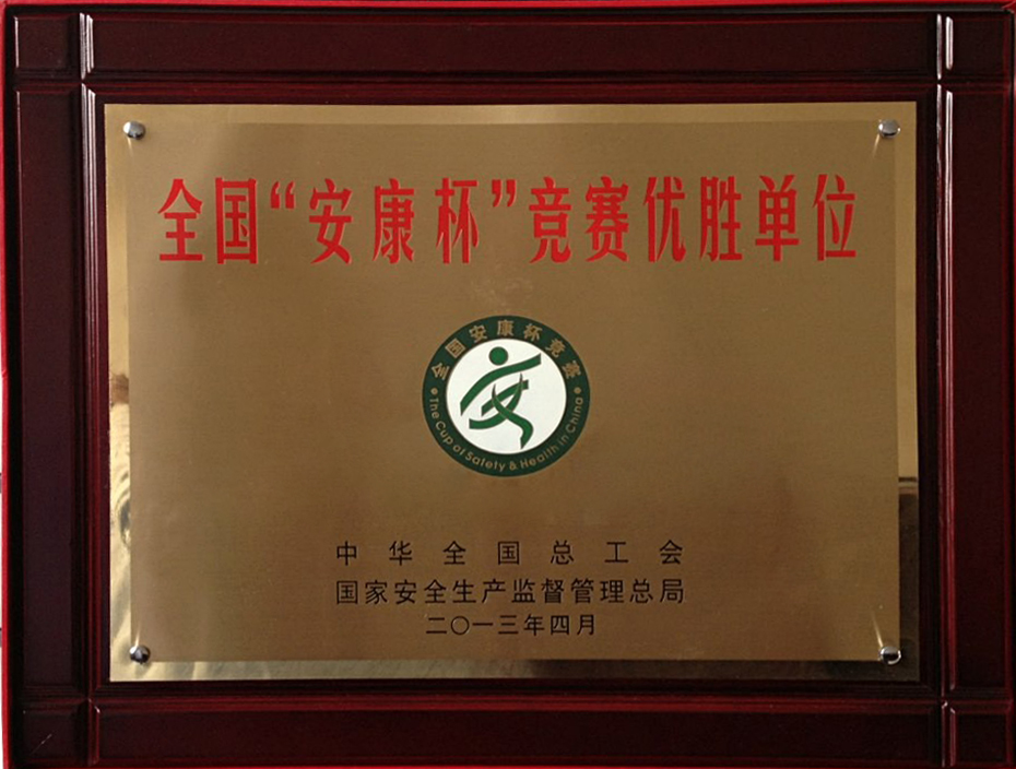 公司在2012年度全國“安康杯”競賽活動中榮獲優勝單位。這是我公司連續第九年獲此殊榮。